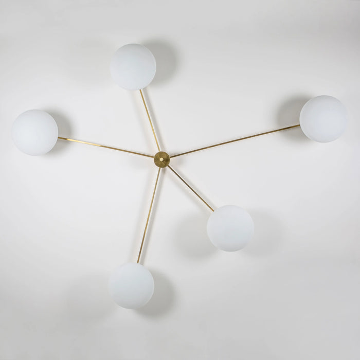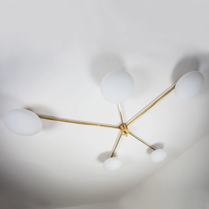 這款優雅而標誌性的黃銅和蛋白石燈的靈感來自中世紀的意大利設計。海星由 5 個臂組成,從中央黃銅體分支出來,像許多穆拉諾乳白玻璃球一樣優雅輕盈。它既可以作為 天花板 和一盞壁燈。