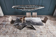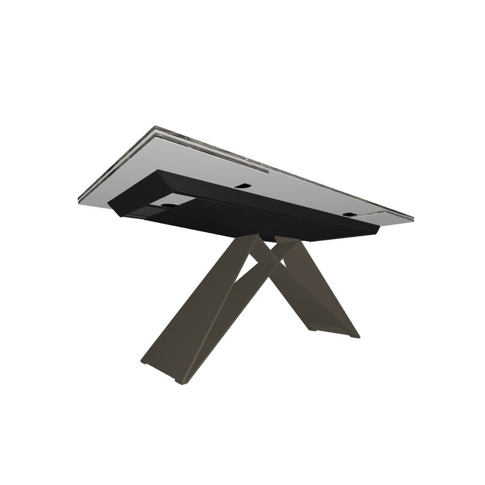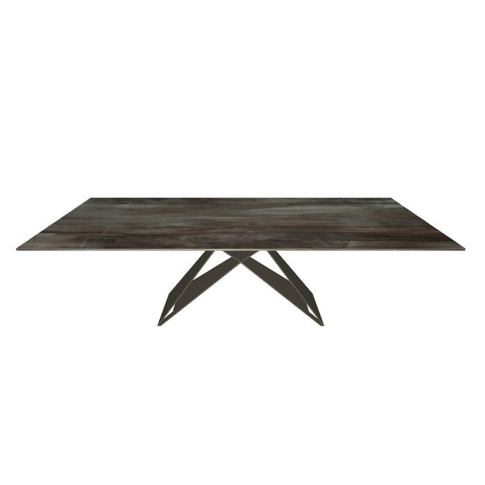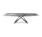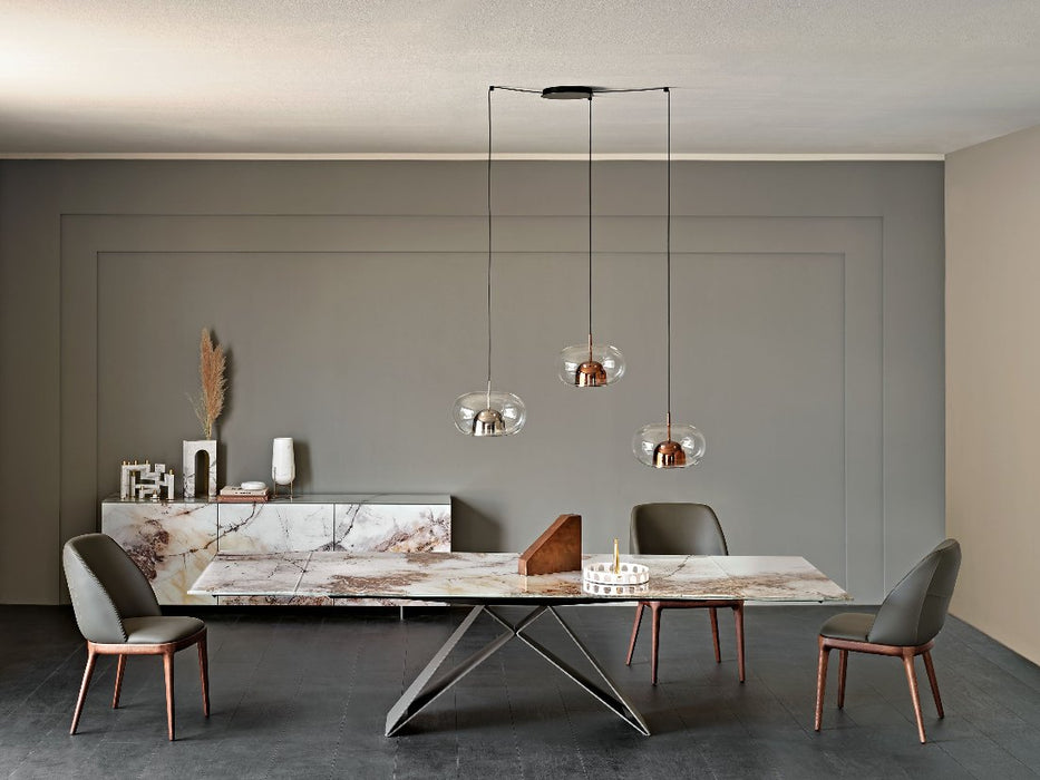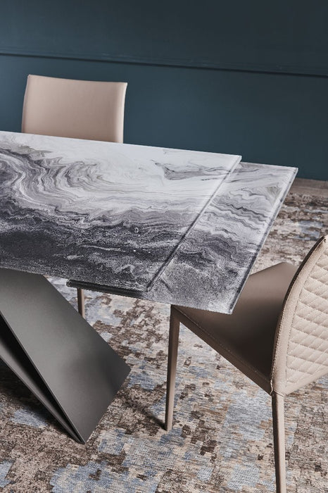 Customization is key to meet many design needs. You may choose between: Premier Crystalart and Premier Crystalart Drive glass tables, decorated with an artistic printing, the latter is an extendable glass table; Premier Keramik with a refined ceramic top, also available in the extendable table version Keramik Drive; Premier Wood and Premier Wood Drive, the first one with irregular edges, the second one with oblique regular edges. Premier design tables pay homage to the finest materials of Italian manufacturing and celebrate conviviality even in limited spaces.