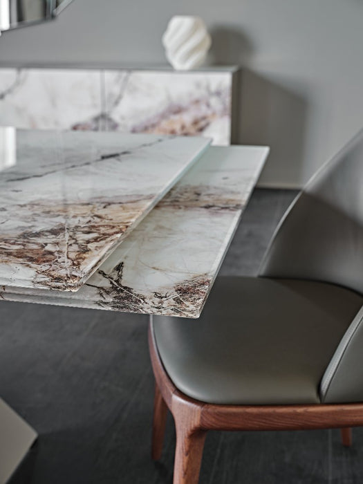 The most refined wood essences were chosen to underline the value of the extendable wooden table, and numerous decorative print variants for the glass table top.