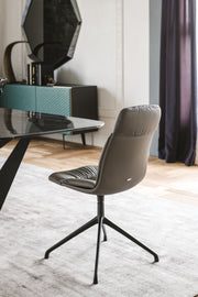 The contrast between the voluminous folds and the taut shell gives life to the seductive and comfortable, modern chairs in the Kelly family. The Kelly swivel chairs have a slender 4-star aluminium base that sturdily supports the large seat and back, enhanced by elegant hand-sewn pleats. This comfortable chair is also made in the Kelly XL version with a wider backrest. The family is completed by the Kelly Cantilever version, also available in the XL version, which has the typical curved base of cantilever chairs. All models are offered in a wide range of refined colours and coatings.