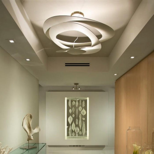 螺旋輕輕下降,產生雕塑般的燈光效果。白色或黑色噴漆鋁製機身。適用於牆壁、天花板和懸掛的全尺寸、迷你和微型。