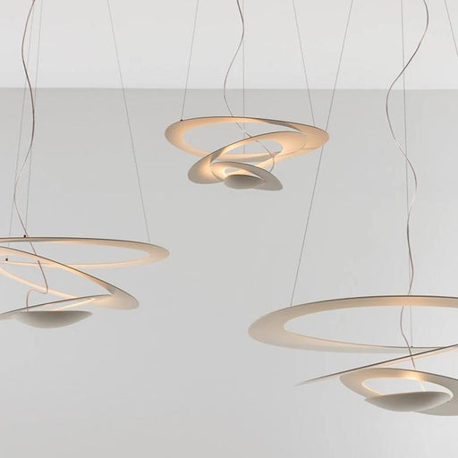 Pirce 的獲獎設計是 Artemide 最暢銷的設計之一。最初發布的是鹵素燈,其光源經過重新設計,融入了高品質、節能的 LED 光源。 Pirce 不僅是優雅的光源,更是迷人的裝飾品打開或關閉都有強烈的存在感。其細長的圓盤輕輕地融入流動的漩渦中,螺旋向下,創造出誘人的燈光效果。
