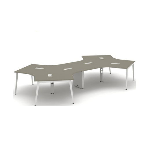 XPFN-NFH31 6座120度工作站 粉體塗裝中密度纖維板表面處理,桌面在坐側有符合人體工學的倒角邊緣。八個鋁製腿看起來像實木。 L4791*W2757*H750mm