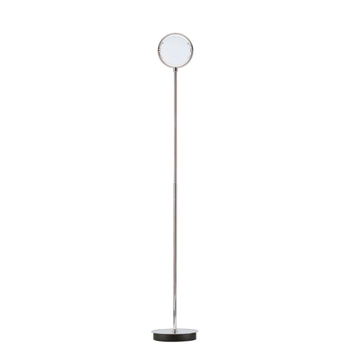 落地燈具有漫射和可調光。透過安裝隨附的反射器,燈可產生直接/間接定向光。鍍鉻緞面鍍鎳金屬框。可調式緞面玻璃漫射器和反射器由陽極氧化鋁製成。黑色電源線、調光器和插頭。附可互換插頭的插入式電源(英國 - 美國 - 歐洲 - 中國)。整合led。