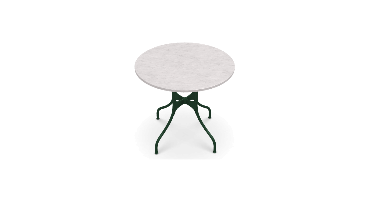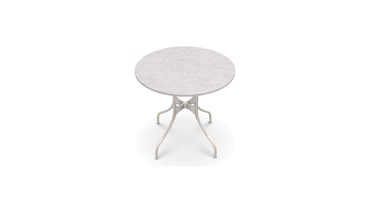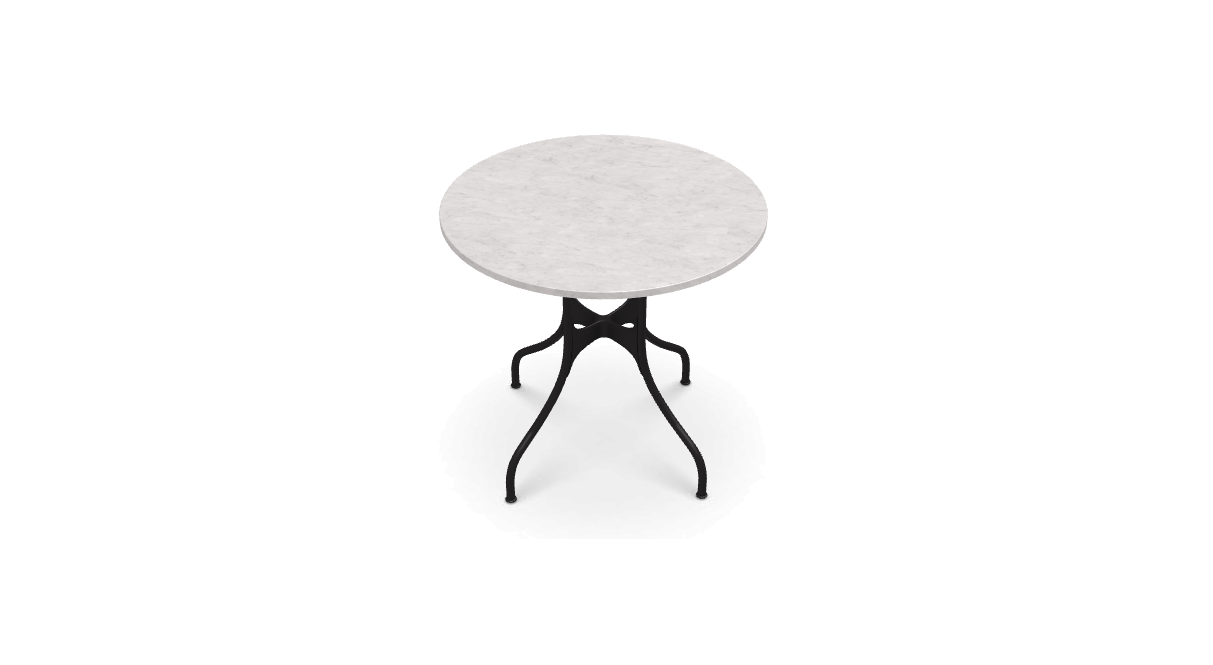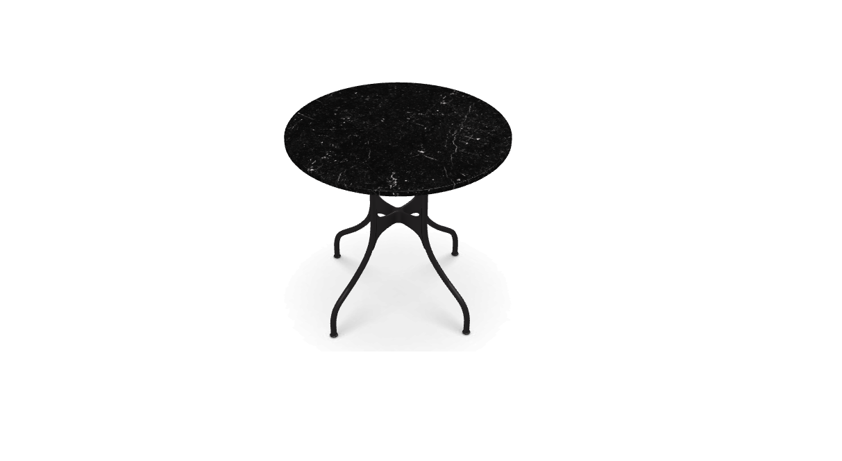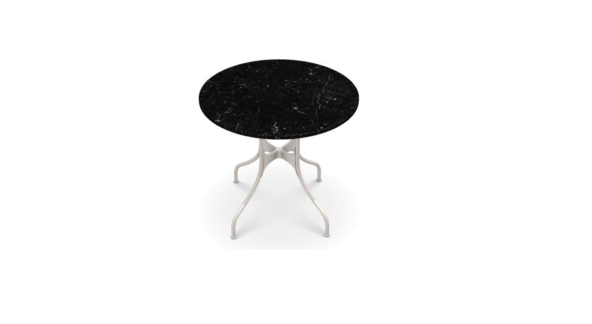 材質:鋼管框架,聚酯粉末塗漆或電泳處理。壓鑄鋁接頭塗有聚酯粉。桌面採用多種飾面:HPL、天然貼面橡木、卡拉拉大理石、Marquina 大理石或 Emperador 大理石。桌子有不同尺寸可供選擇。