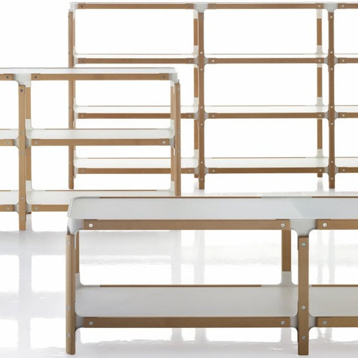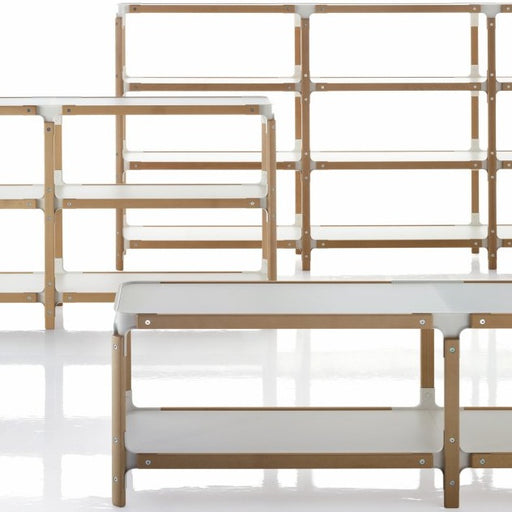 框架(立柱和橫樑)採用實心山毛櫸木,天然或塗漆。鋼板接縫塗有聚酯粉末。塗漆中密度纖維板層架。