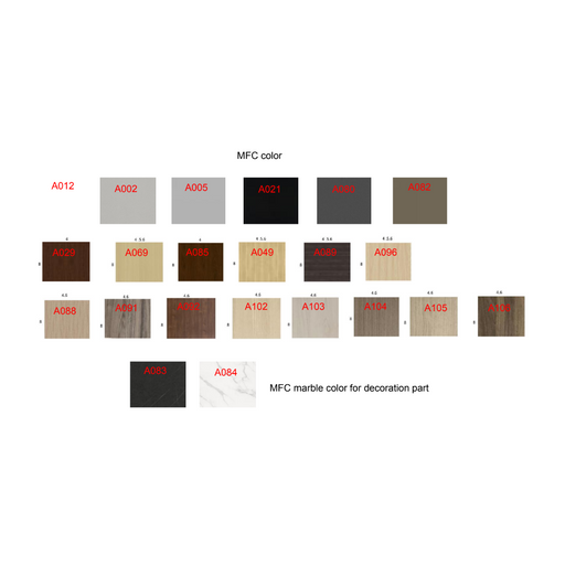 粉末塗層中密度纖維板飾面,中間有一個抽屜,兩側有兩扇門。抽屜前板和車門為粉末塗層MDF,其他為MFC。